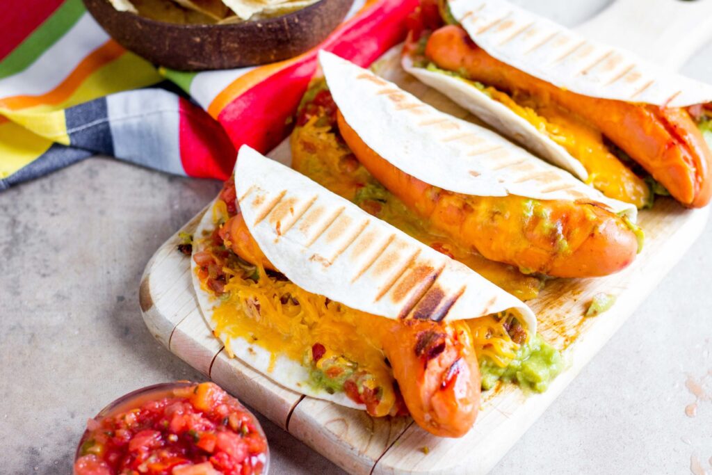 Place 1 Bavarian Brand Jumbo Frank inside of each tortilla.