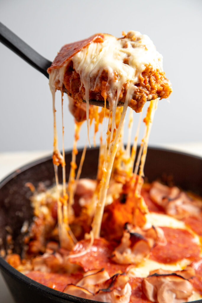 Set oven to broil and place skillet in for a few minutes until cheese is bubbly and melted. Remove from oven and let cool a few minutes before serving. Enjoy!