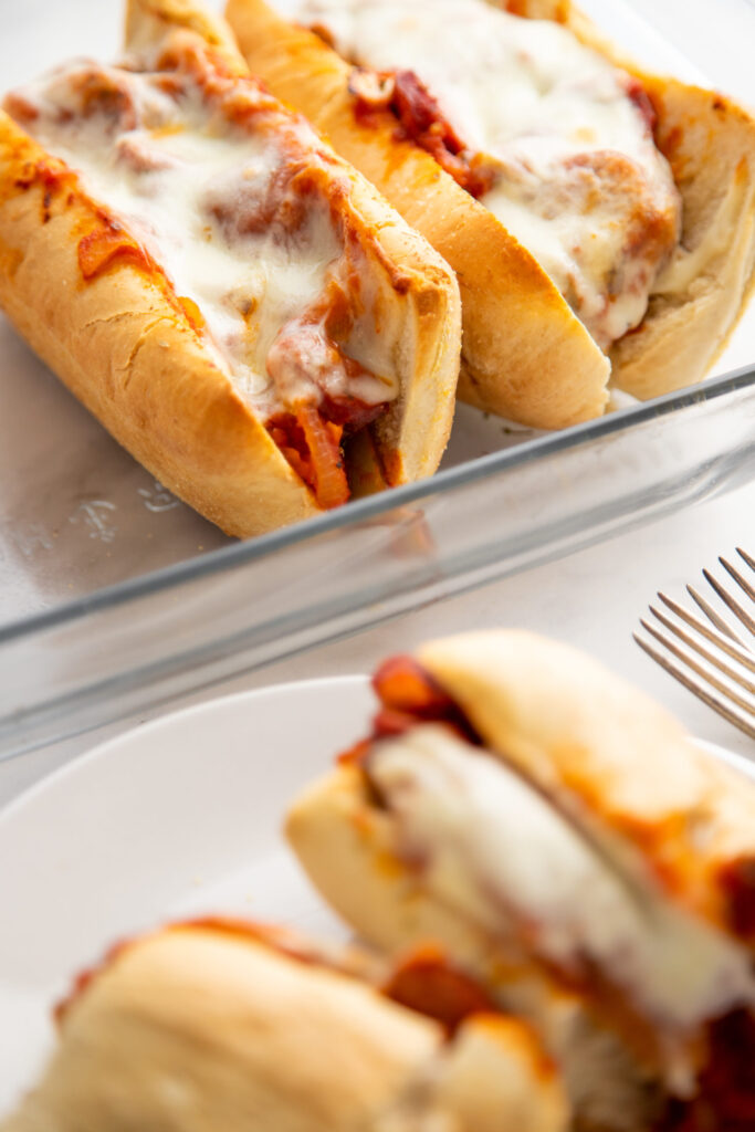 Add 1 piece of cheese to the top of each hoagie and bake in preheated oven for 15-20 minutes until cheese is melted and bubbly.