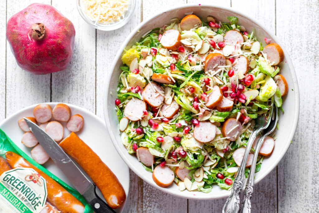 Embrace the flavors of the season with our Winter Black Forest Chicken Salad recipe—a delightful creation that blends the smoky richness of chicken sausage, the earthy charm of Brussels sprouts, and the vibrant burst of pomegranate seeds. This salad captures the essence of winter in every bite, offering a harmonious medley of tastes and textures that's both satisfying and refreshing. As you savor each forkful, the savory allure of the chicken sausage meets the crispness of Brussels sprouts, while the sweet tang of pomegranate seeds adds a delightful contrast. Greenridge Naturals' commitment to quality ingredients shines through in this recipe, inviting you to experience the joys of the season in a single, delectable dish.