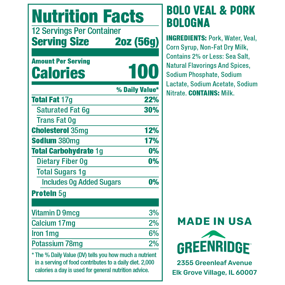 Greenridge Bolo Veal and Pork Bologna is the real deal, made with a delicious combo of veal and pork. Using traditional techniques, we hardwood smoke our bologna, giving it a delicious smokey flavor. Creating a product we’re proud to share with your family means we prioritize natural ingredients and avoid shortcuts and preservatives.