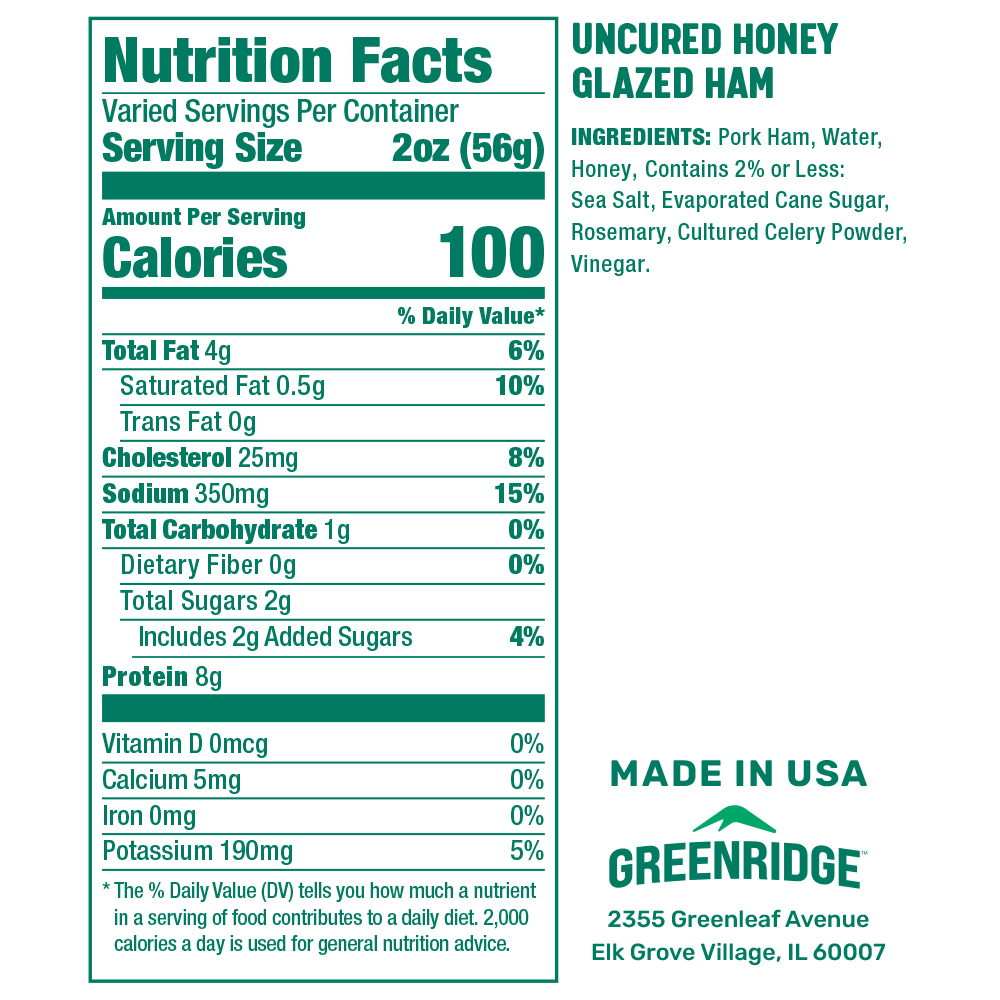 Our Uncured Honey Glazed Ham is a sweet and savory cut of meat that features a glaze of natural brown sugar that carmelizes as it bakes to create a harmonious blend of flavors. Earthy and salty undertones are complemented by the glaze that pairs perfectly with sauteed vegetables, tangy cheese and freshly baked bread.