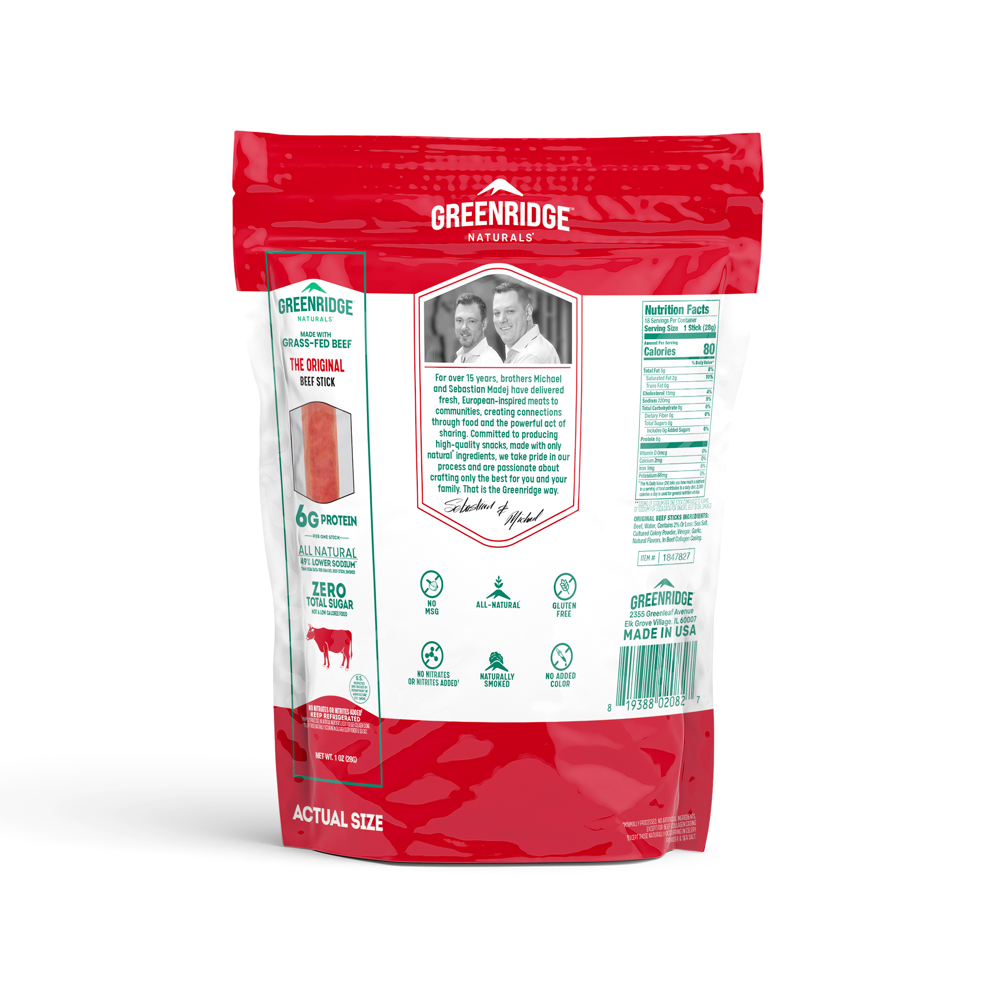 Grab our 18-count box of 1-ounce Greenridge Beef Sticks – Original! Made with grass-fed beef, these zero-sugar, lower-sodium snacks are perfect for lunches, workouts, or anytime you need a high-protein boost. Keep refrigerated.