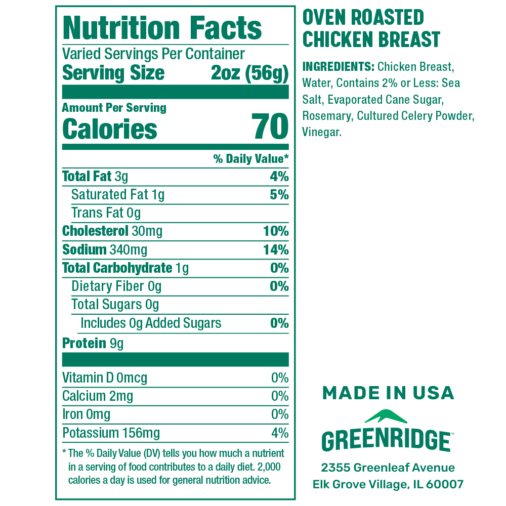 Greenridge Oven Roasted Chicken Breast is expertly roasted, crafted with quality ingredients and no artificial additives, preservatives, or added hormones. it’s a delicious, and wholesome choice for your sandwiches, salads or snacks!